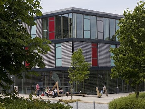 Ein modernes Laborgebäude (baulab3) bildet die Grundlage für einen vielfältigen Austausch zwischen Praxis und Forschung. In dem neuen Riegel sind unter anderem die zentralen Einrichtungen für den gesamten Campus, die Bibliothek und die Mensa, untergebracht.