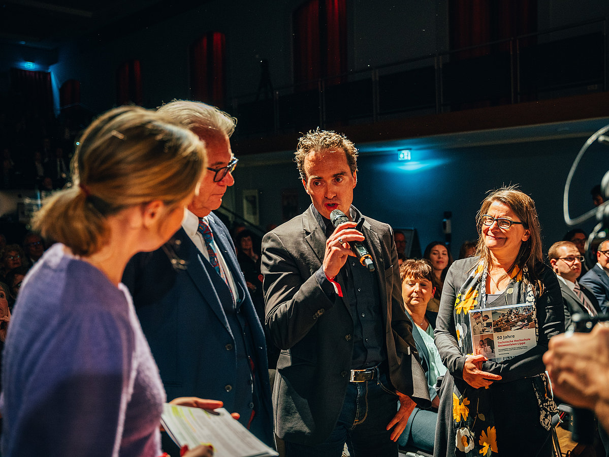 Großartige Talkgäste und bewegende Geschichten: Beim Jubiläumsempfang haben Hochschulmitglieder, Alumni und die Gäste aus Wirtschaft und Politik dem 50-jährigen Jubiläum der TH OWL eine würdige Feier beschert. Besonders die spannenden Rückblicke, die tiefen Einblicke und die visionären Ausblicke der Talkgäste haben den Abend mit Leben gefüllt.