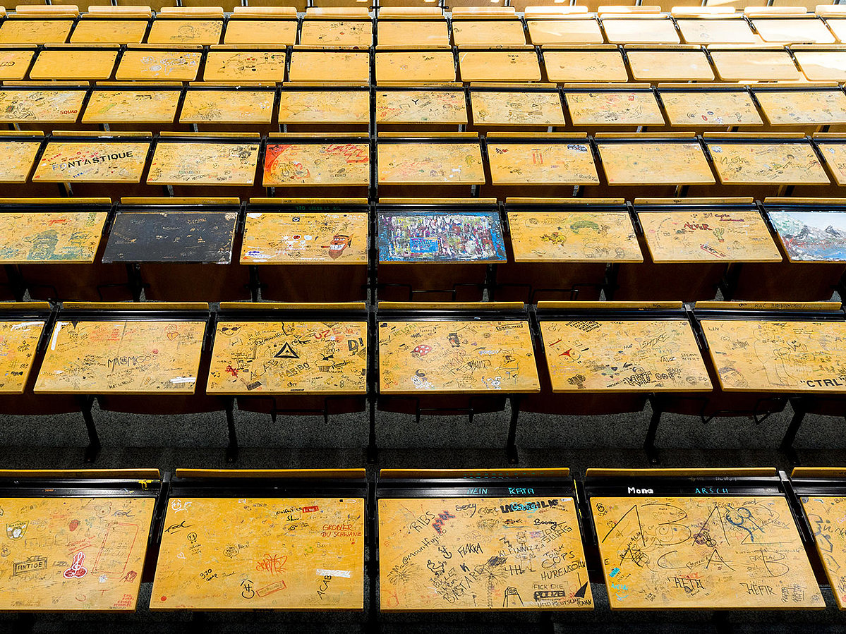 Februar 2021: Eine Hörsaal-Ära geht zu Ende. Alle Hörsäle am TH OWL Standort Lemgo werden saniert. In einem Hörsaal, der viele Jahre von dem Fachbereich Medienproduktion genutzt wurde, ist ein Kunstwerk entstanden. Die Studierenden haben sich mit Comics, Liebeserklärungen und Sprüchen auf den Tischen verewigt. Die Tische sind in gewisser Weise ein Dokument der Zeitgeschichte. Sie werden als Andenken an ehemalige Studierende der Medienproduktion verlost. Die TH OWL stellt online die schönsten Tisch-Kunstwerke aus den vergangenen Jahrzehnten aus und hat einen Psychologen gefragt, warum wir eigentlich beim Denken zeichnen.