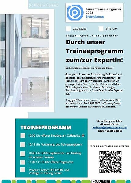 Klingt gut? Dann kommen Sie am 25.04.2024 zu Phoenix Contact ins Training Center in Schieder-Schwalenberg: