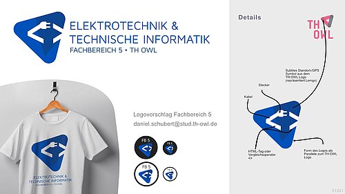 Der Gewinner des Wettbewerbs ist das Blaue Logo, welches das Logo der TH OWL mit Kabeln, Steckern und Klammern kombiniert, um den Fachbereich zu repräsentieren.