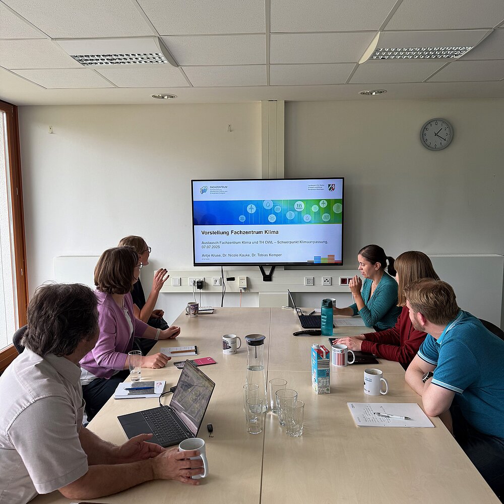 Der Schutz von Natur und Umwelt zugunsten von Mensch und Tier steht im Mittelpunkt der Arbeit des LANUK. Dieses breite Aufgabenfeld umfasst Themen wie den Natur- und Bodenschutz, die Luftreinhaltung oder den Gewässer- und Klimaschutz. Das sind alles Themen, die auch im Studiengang Umweltwissenschaften beachtung finden. Der Austausch zwischen TH OWL und LANUK zeigte viele Potenziale für die praxisnahe Lehre auf. Das LANUK stellte beispielsweise den digitalen Klimaatlas vor. Darin sind umfangreiche Informationen zum Klima und seiner Entwicklung in Nordrhein-Westfalen enthalten. Viele der Daten stehen zum Download bereit und können direkt in der Lehre eingesetzt werden.