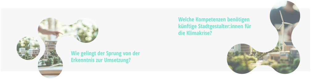 Während die Forschung innovative Methoden und Indikatoren entwickelt, kämpft die Verwaltung mit begrenzten Ressourcen und komplexen Abstimmungsprozessen. Planungsbüros müssen sich ständig über den neuen Stand der Technik und veränderte gesetzliche Rahmenbedingungen informieren. Hochschulen müssen sich fragen, welche Kompetenzen künftige Stadtgestalter:innen für die Klimakrise benötigen.