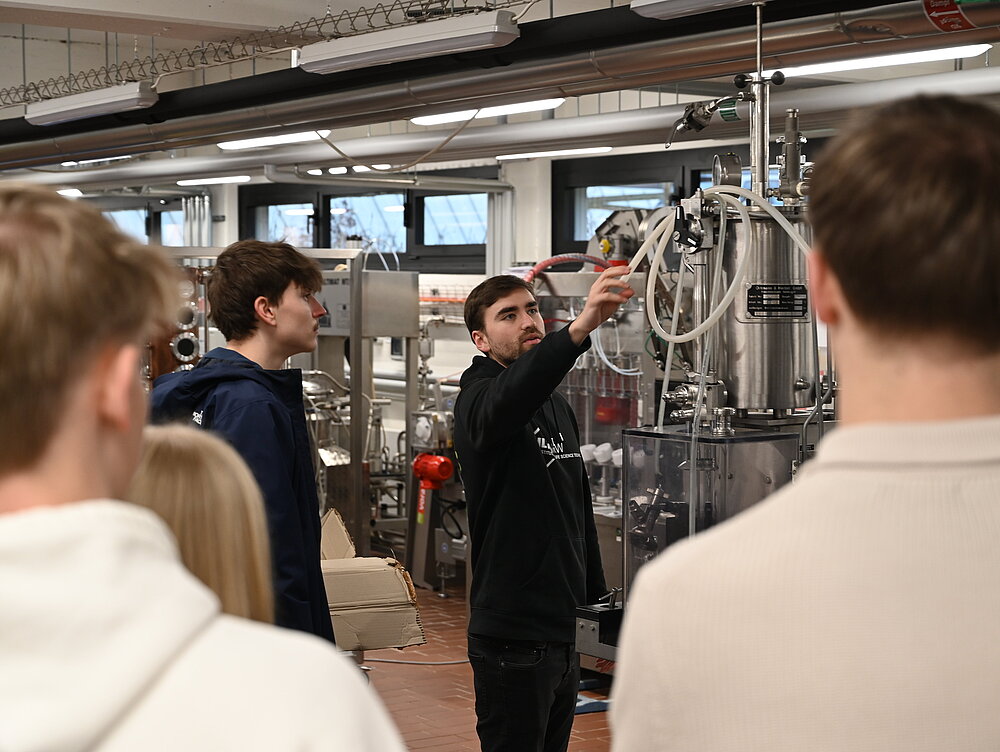 „Limonadentrends zum Selbermachen“– Johanna und Simon gaben spannende Einblicke in die Welt der Getränketechnologie. Die Teilnehmenden konnten selbst Getränke mischen, mit verschiedenen Aromen experimentieren und so die Entwicklung innovativer Produkte direkt ausprobieren. Darüber hinaus hatten sie die Möglichkeit, die Brauanlage anzuschauen, Apfelsaft zu verkosten und einen Blick in den Sensorikraum zu werfen.