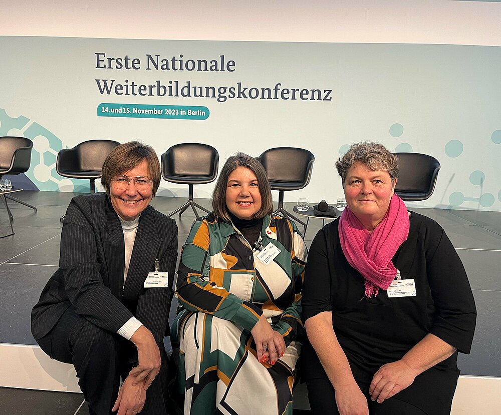 Aus OWL waren mit Birgit Schneider (TH OWL, IWD), Dr. Maribel Illig (HWK OWL) und Ute Horstkötter-Starke (IHK Ostwestfalen) Vertreterinnen aus akademischer und beruflicher Bildung dabei. In den hochkarätig besetzten Podiumsdiskussionen war man sich einig, dass eine neue Weiterbildungskultur in Deutschland notwendig ist, damit auch in Zukunft die Fachkräftebasis erhalten und ausgebaut werden kann. Dies beinhaltet unter anderem einen Kulturwandel, der Lebensbegleitendes Lernen zum selbstverständlichen Teil der Biografie werden lassen soll und damit individuelle Entwicklungs- und Aufstiegsperspektiven eröffnet. Ein Teilnehmer der Konferenz brachte es auf den Punkt: „Die Nationale Weiterbildungsstrategie ist dann erfolgreich, wenn das Sprichwort „Was Hänschen nicht lernt…“ nicht mehr gilt.“ Birgit Schneider war für das IWD in Berlin, um mehr über die vielversprechenden Ansätze zu erfahren.