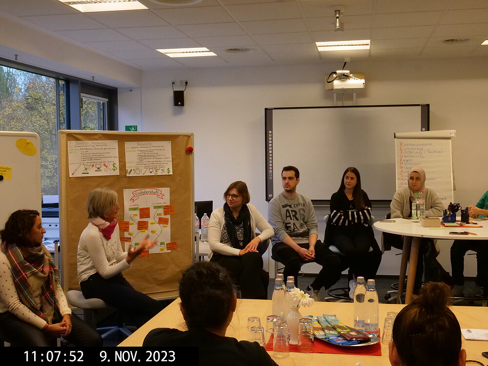 Am letzten Tag ihres Besuchs erhielten die spanischen Gäste Einblicke in die didaktische Ausbildung von angehenden Berufsschullehrer:innen hierzulande. Dazu trafen sie sich auf dem Innovation Campus Lemgo mit Lehramtsstudierenden der School of Education der TH OWL. Die beiden Gruppen tauschten sich angeregt über die Besonderheiten des spanischen und des deutschen beruflichen Bildungssystems aus. Dabei waren insbesondere Fragen zu der beruflichen Perspektive, zum Verhältnis von Theorie und Praxis sowie zur Ausgestaltung der Bildungsgänge Gegenstand der Diskussion.