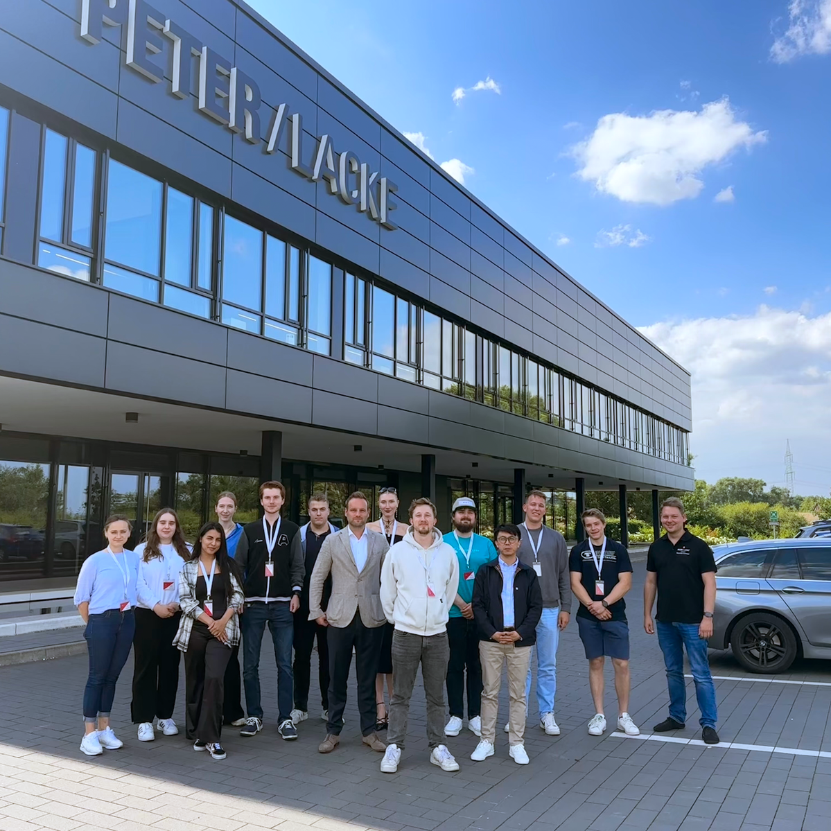 Nicht weniger eindrucksvoll gestaltete sich die Führung durch das Produktionsgelände, die Labore sowie Test- und Verwaltungsräume. Dank der weitrechenden Erfahrung eines seit 1987 bei PETER / LACKE beschäftigten Mitarbeiters erhielten die Studierenden nicht nur faktisches Wissen zur Herstellung und Qualitätssicherung von Lacken, sie wurden gleichsam in den wertschätzenden Umgang des gesamten Teams einbezogen: Die PETER / LACKE GmbH geht nicht nur mit größter Sorgfalt auf die Wünsche ihrer Kunden ein, auch die Zufriedenheit der Mitarbeitenden aller Standorte sind der Geschäftsführung ein wertvolles Gut.