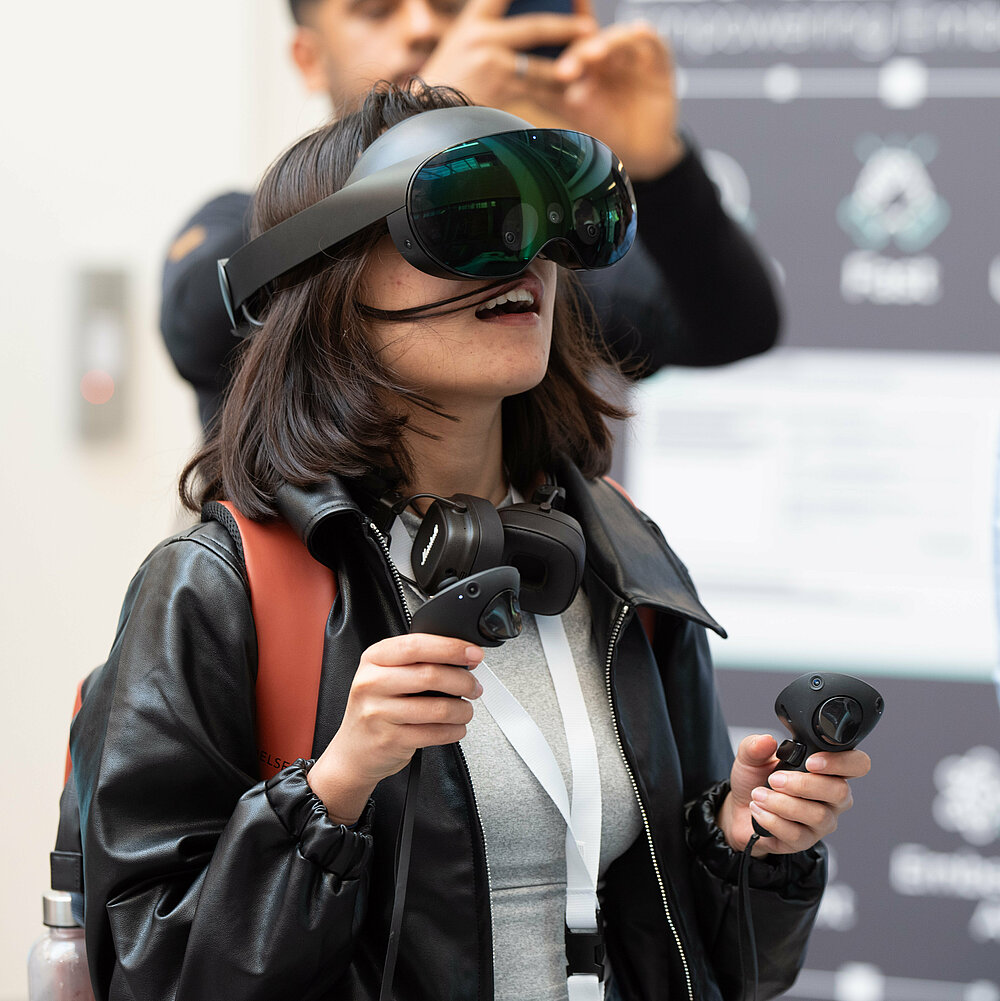 Den krönenden Abschluss des Bühnenprogramms bildete die Ankündigung des Films „Mein Freund der Dummy“ von Prof. Sebastian Grobler, Dekan des Fachbereichs Medienproduktion. Der Trailer gewährte den Zuschauenden einen spannenden Einblick in die Entstehung des Films, der mit modernster Technologie die Übertragung von Mimik und Bewegung auf einen digitalen Dummy zeigt.