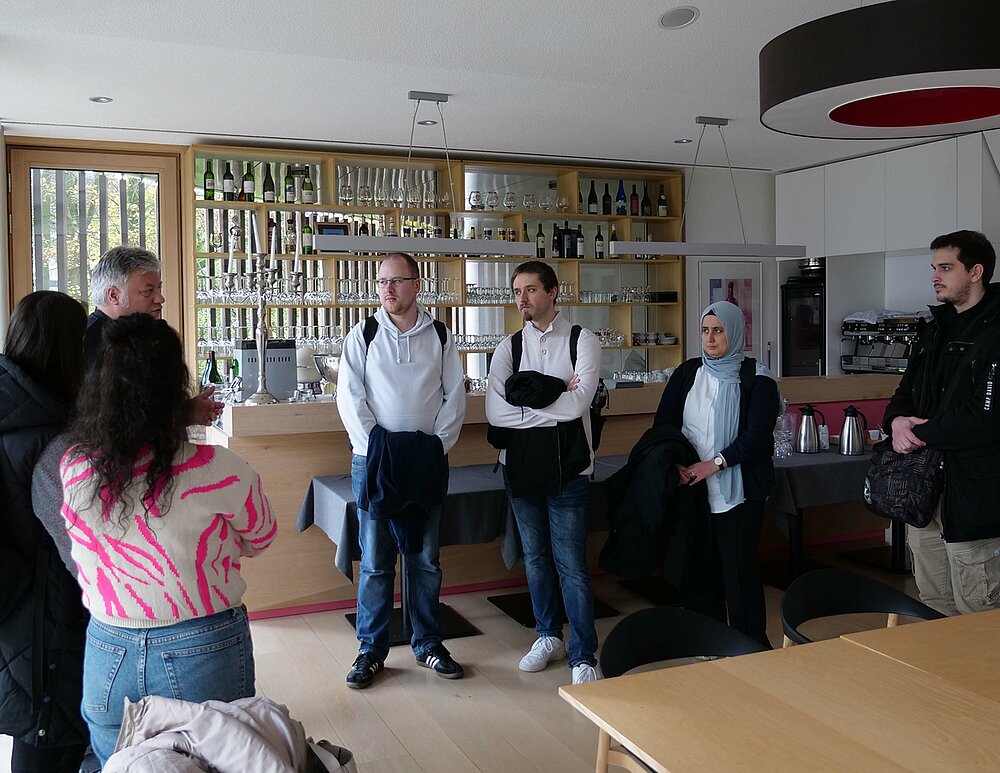 Die Schule öffnete für die Besuchergruppe viele Türen und ermöglichte es, drei Unterrichtsstunden live zu erleben. Dabei wurde die Bandbreite eines Berufskollegs deutlich: Fachunterricht im Klassenverbund (Frau Schulz), eine Prüfungssituation (Herr Hemjeoltsmanns) und fachpraktischer Unterricht in der Lehrküche (Herr Brun). Die Lehrkräfte zeigten den Studierenden ihren Unterricht und standen für Fragen rund um die didaktische Herangehensweise zur Verfügung.