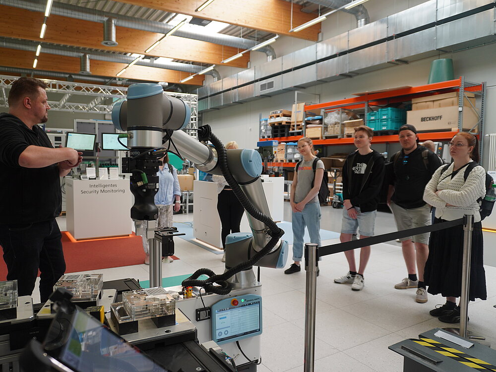 The campus tour, organized by the Research and Transfer Center (FTZ) at TH OWL, took guests through the university's central facilities: the main building, the Future Food Factory OWL, the InnovationSPIN, and also the SmartFactoryOWL.