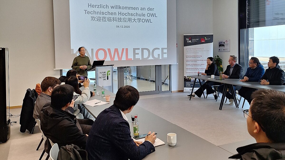 Nachdem die Hochschule von Prof‘in Li vorgestellt wurde, führten Prof. Deuter und Prof. Blauth die Delegation über den Innovation Campus Lemgo. Im Anschluss fand eine Diskussion zu möglichen zukünftigen Formen des weiteren Austausches statt.