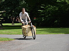 Deine Bekannten werden beeindruckt sein. Der Rahmen ist durch Verrippung verdrehsteif, gleichzeitig in der Vertikalen gut gefedert. Schon als Bio-Cargobike können nicht nur Bedürfnisse der Nahmobilität befriedigt werden, weitere Touren sind problemlos möglich.