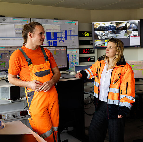 Also grundsätzlich ist meine Stelle schon ziemlich ganzheitlich angelegt: Ich kann an beiden Arbeitsorten an meiner Promotion arbeiten. Beim STEB schaue ich mit auf das Prozessleitsystem und fertige Berichte an. Ich gebe hier auch Führungen und betreue den Insta-Account. Bitte alle folgen! An der Hochschule in Höxter habe ich hingegen Zugriff auf das Hochschulnetzwerk, das ist natürlich wichtig für meine Arbeit. Und ich darf lehren, das macht mir wirklich viel Spaß. Für beide Standorte aber gilt: Ich werde unglaublich gut betreut, habe feste Ansprechpartner:innen, bekomme viel Unterstützung und darf meine Forschung in Ruhe und mit vielen Freiheiten voranbringen.