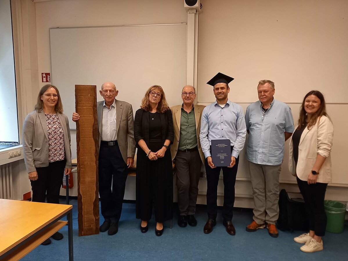 Nathan Kölli hat seine kooperative Dissertation mit dem Titel „Mechanical Dewatering and Thermo-Hygro-Mechanical Densification of Wet Oil Palm Lumber“ erfolgreich an der Universität Hamburg verteidigt. Er hat am Labor für Holzbauprodukte und Holzbauproduktion des Fachbereichs Produktions- und Holztechnik unter der Betreuung von Professorin Katja Frühwald-König geforscht.