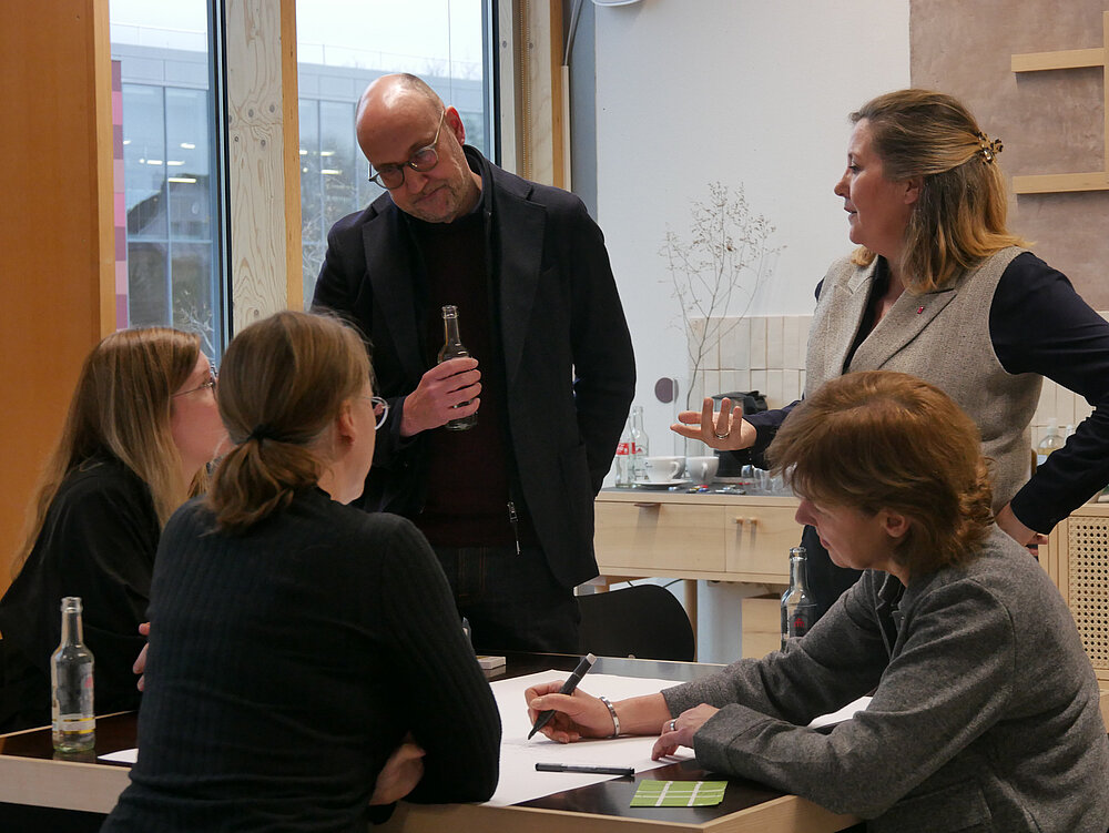 Der Innenraum bietet erhebliche, bislang jedoch unzureichend genutzte Potenziale für Klimaschutz, Kreislaufwirtschaft und gesundes Bauen. Insbesondere der Ausbau- und Möbelsektor ist durch kurze Nutzungszyklen, hohen Ressourcenverbrauch und große Abfallmengen gekennzeichnet. Gleichzeitig stehen bereits zahlreiche nachhaltige Materialien, zirkuläre Möbelkonzepte und rückbaubare Ausbausysteme zur Verfügung. Deren Umsetzung bleibt in der Praxis bislang jedoch die Ausnahme, obwohl im Innenraum häufig vergleichsweise günstige Voraussetzungen für niedrigschwellige Realisierungen bestehen. Beim Transfertag Zirkuläre Innenarchitektur, der im Rahmen des Forschungsprojekts CO₂Bau unter der Leitung der Professorinnen Susanne Schwickert, Katja Frühwald-König und Anna Tscherch stattfand, analysierten Akteur:innen aus Innenarchitektur und Architektur, Handwerk, Industrie, Wissenschaft und öffentlicher Hand entlang realer Planungs-, Bau- und Entscheidungsprozesse bestehende Hemmnisse und diskutierten übertragbare Ansatzpunkte für die Praxis. Kurze Impulse von Mark Vomberg (Designdirektive)