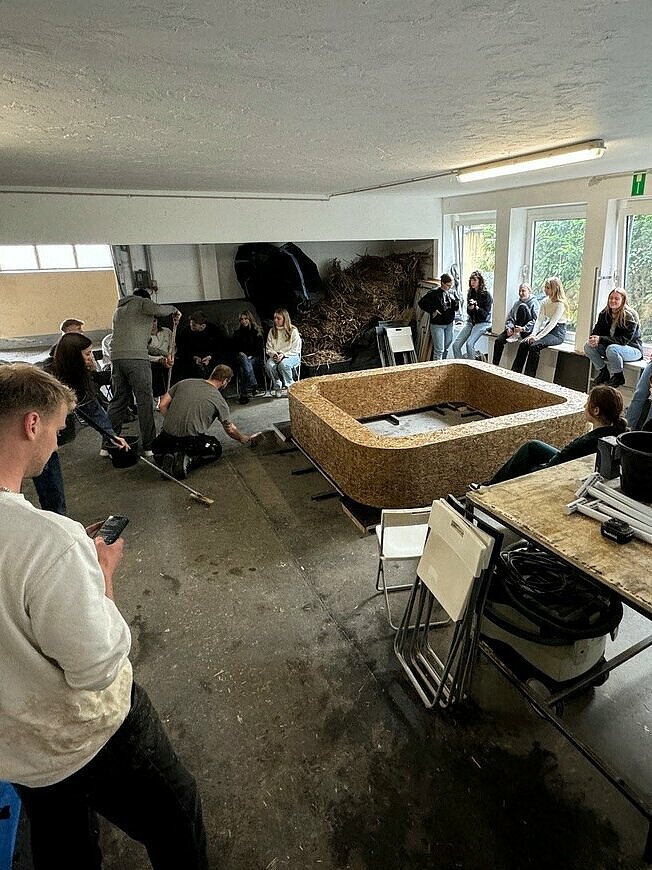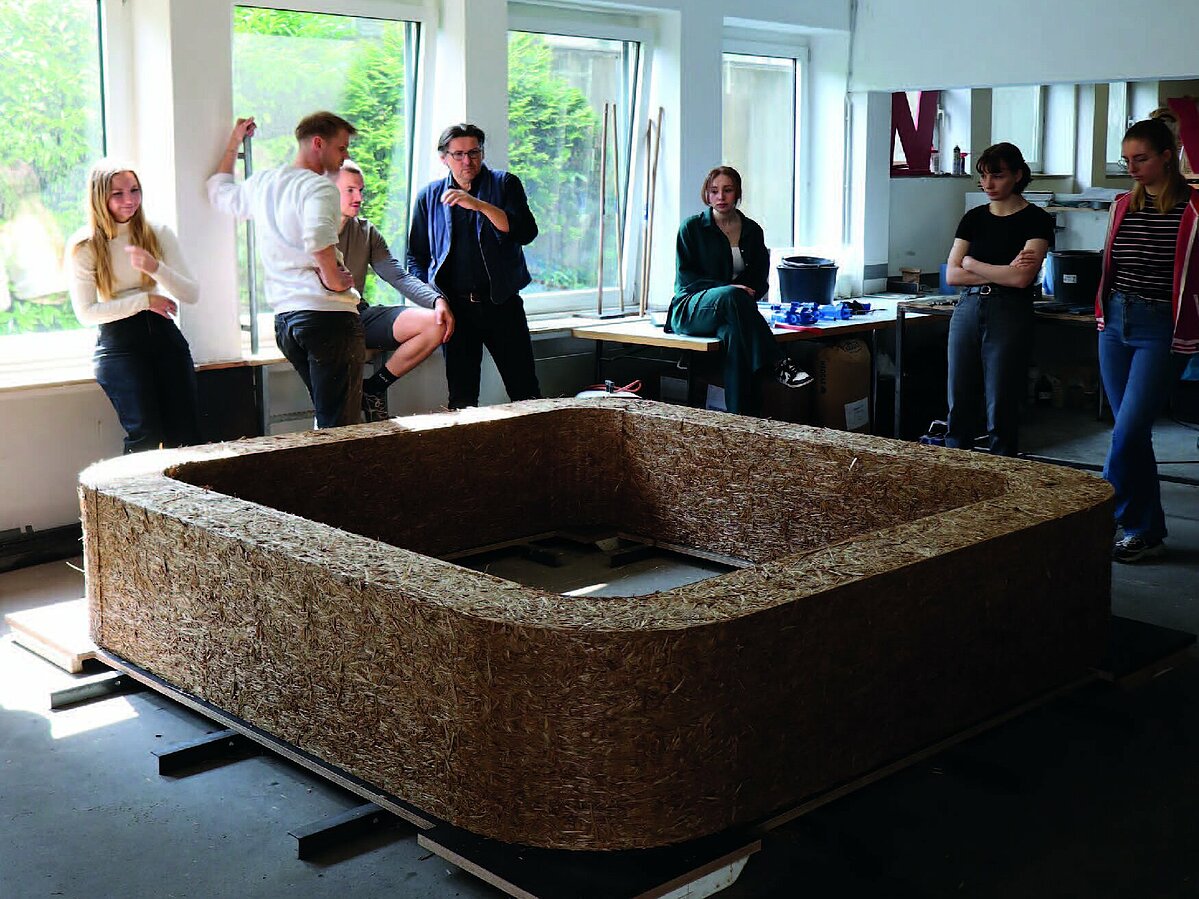 Der erste von 12 Rahmen für den Green Container ist nun im Rahmen eines Workshops mit Studierenden an der Detmolder Schule für Gestaltung hergestellt worden. Als Ergebnis wird das weltweit erste Klein-Gebäude entstehen, das in ausschließlich aus Typha-Faserverbundwerkstoffen besteht. Dieses Pilotprojekt ist jedoch nur ein Zwischenschritt auf dem Weg, mit Pflanzenbaustoffen ökologisch und zugleich ökonomisch zu bauen. Es soll beweisen, dass ökologische Architektur auch wirtschaftlich und rentabel sein kann.