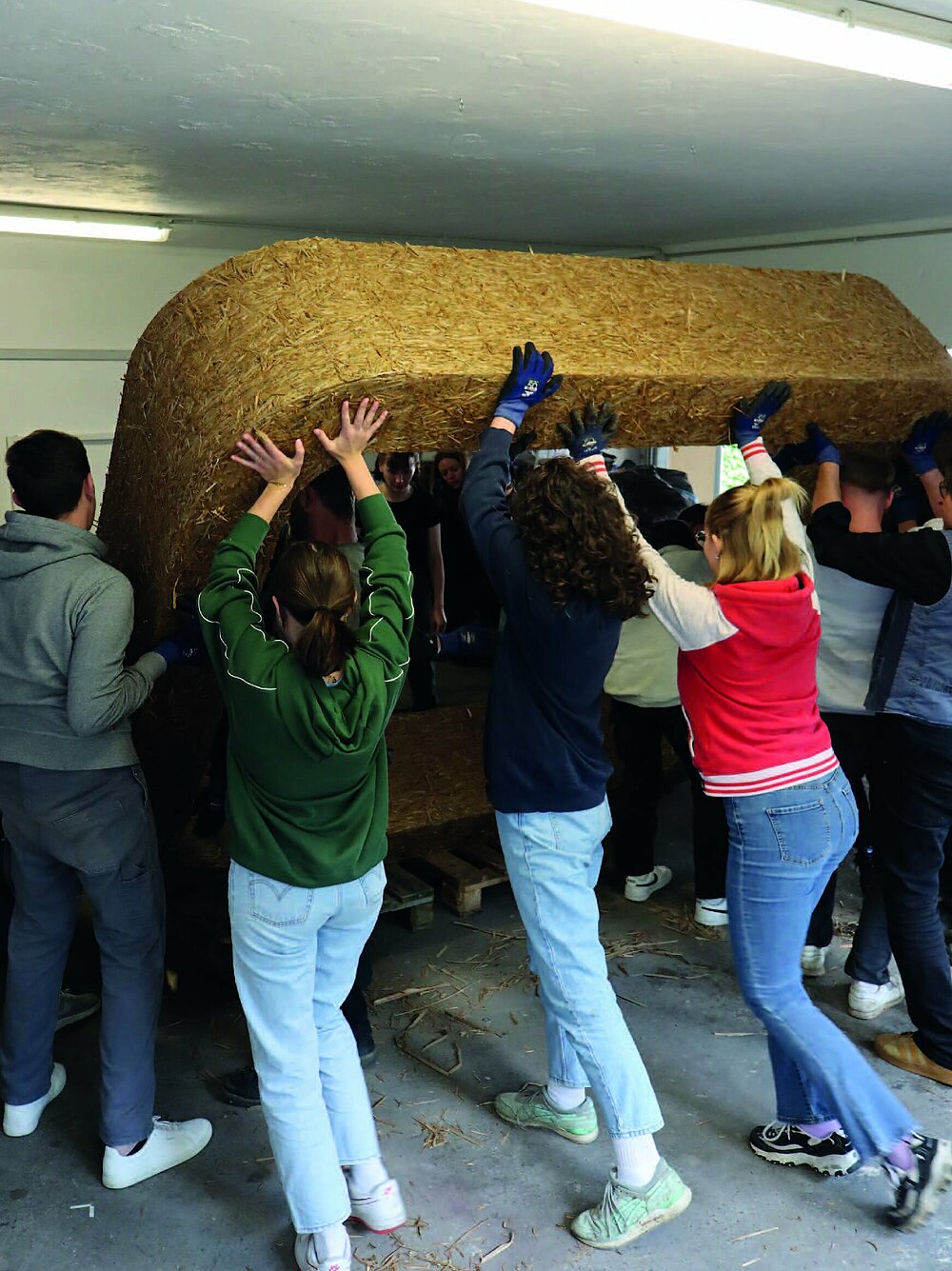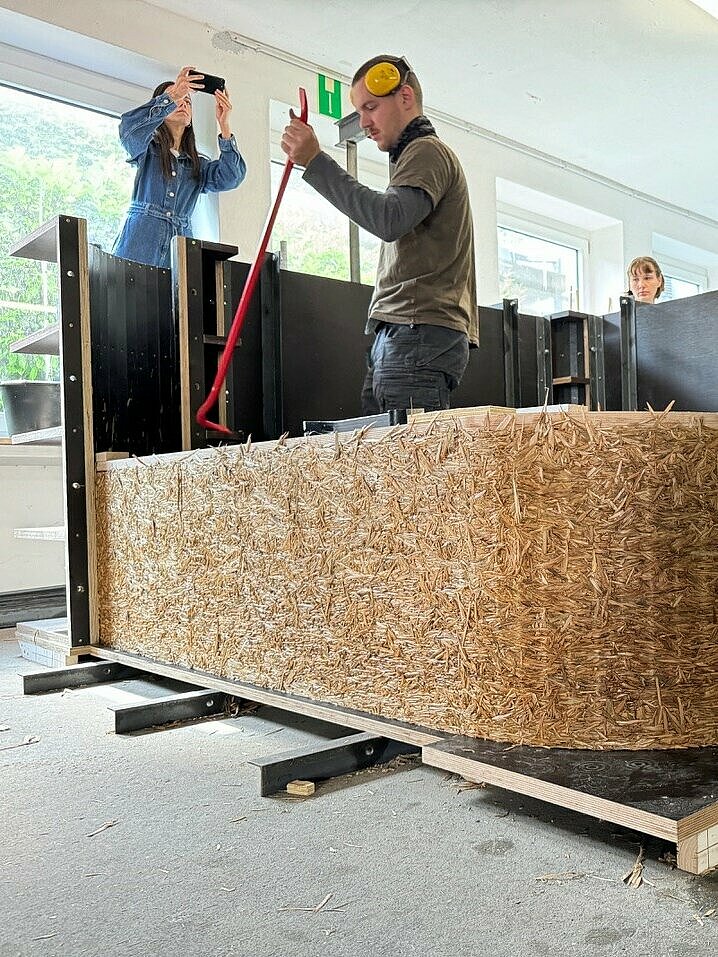 Bei der Herstellung der Bauteile werden verschiedene Bindemittel getestet, welche dem Baustoff unterschiedliche Eigenschaften verleihen. Prof. Manfred Lux betont: „Die Wahl der Bindemittel ist entscheidend für die Umweltverträglichkeit unserer Baumaterialien. Wir setzen auf natürliche und nachwachsende Stoffe wie Stärke, Gluten und Casein. Unser Ziel ist es, ausschließlich Materialien zu verwenden, die sowohl leistungsfähig als auch umweltfreundlich sind, um dem Begriff „Nachhaltiges Bauen“ gerecht zu werden.“
