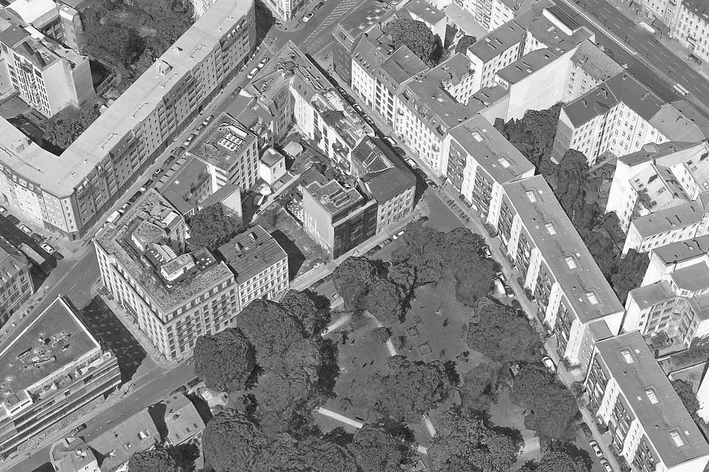 Mitten in Mitte liegt eine der selten gewordenen Baulücken Berlins. Unweit vom Alexanderplatz zwischen Hackeschem Markt und Rosenthaler Platz findet man das unbebaute Grundstück - in bester Lage und trotzdem ruhig. Wie sieht eine zeitgemäße bauliche Lösung dieser Situation aus? Auf der einen Seite ein um die 100 Jahre alte Nachbar, auf der anderen ein Jungspund aus diesem Jahrtausend. Gegenüber ein alter Garnisionfriedhof. Wie vermittelt hier der fehlende Baustein? und muss er es überhaupt vermitteln?