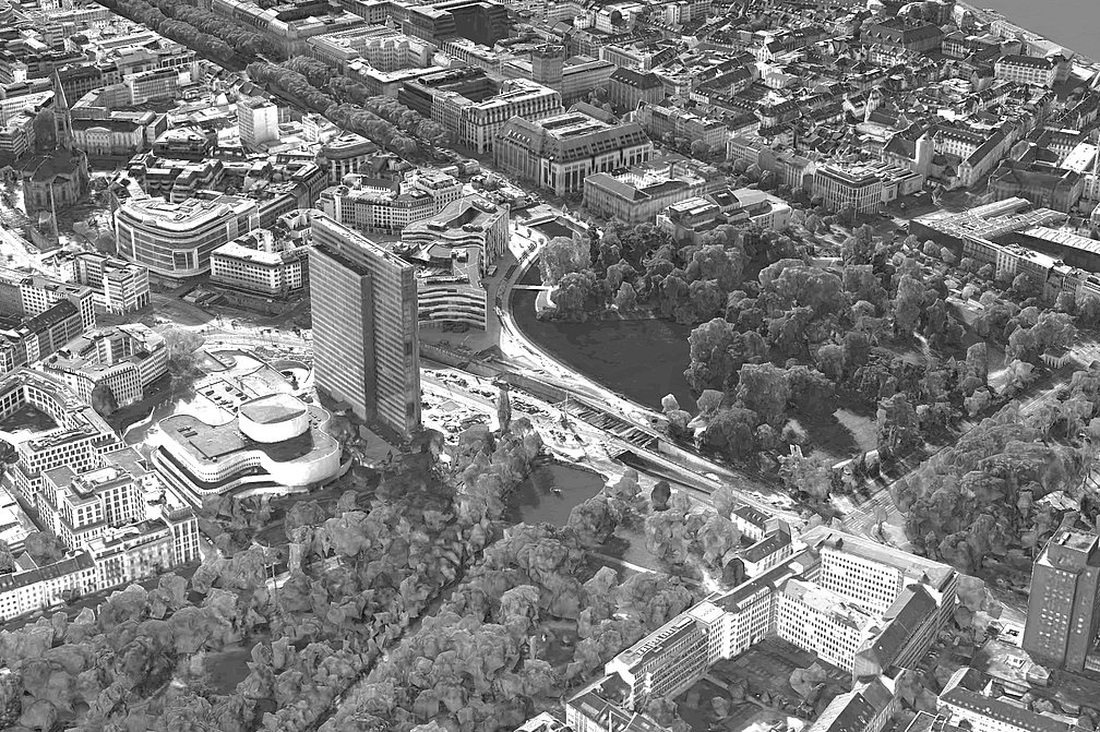 Der Hofgarten erstreckt sich vom Rhein in die Innenstadt Düsseldorfs. In ihm liegen, neben großflächige Grün- und Wasseranlagen, auch Museen. Eines von ihnen ist das Theatermuseum in Nachbarschaft zu architektonischen Aushängeschildern wie dem Düsseldorfer Schauspielhaus von Bernhard Pfau (1969) und dem Dreischeibenhaus von Helmut Hentrich und Hubert Petschnigg (1960). Während die der Stadt zugewandte Seite dieser Häuser in den vergangenen beiden Jahrzehnten mit der Entwicklung des Kö-Bogens aufwendig neugestaltet wurde, hat man das Theatermuseum und seine Umgebung eher vernachlässigt. Um diesen Missstand zu beheben, wollen wir nach Nutzungen und deren baulicher Form suchen, die diesen Teil des Hofgartens attraktiver machen können. Wie kann es gelingen, die Qualität der Nachbargebäude zu nutzen und doch eine eigene Identität für den neu entstehenden Ort zu schaffen? Wie kann ein konzeptioneller Anschluss an das Theatermuseum aussehen? Gedacht ist an die Planung eines oder mehrerer Pavillons.