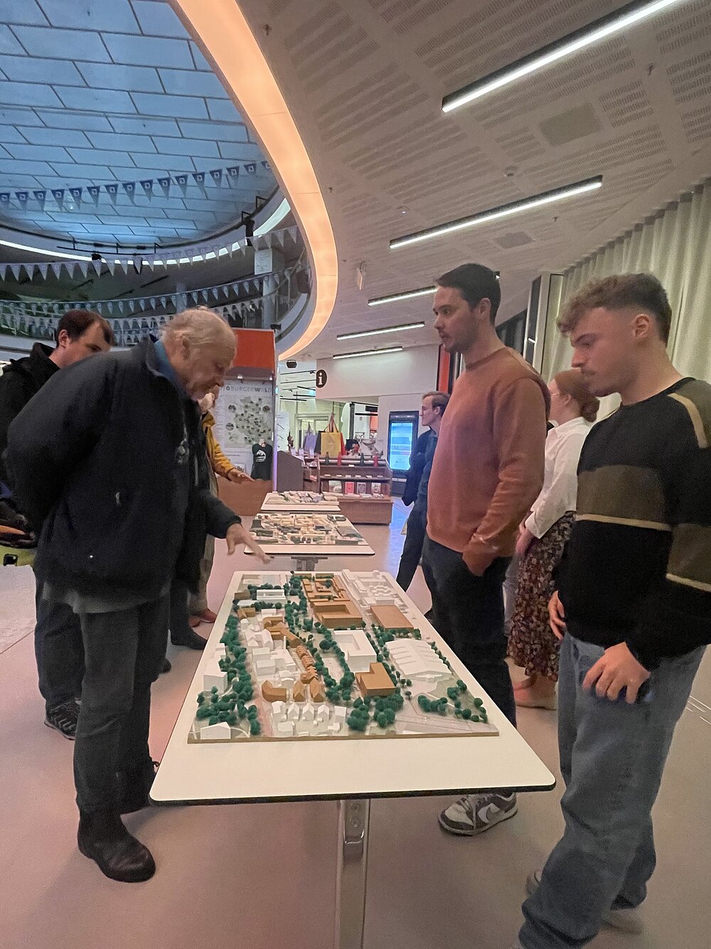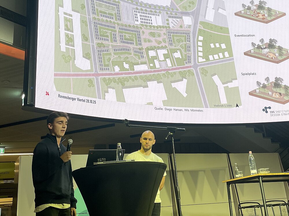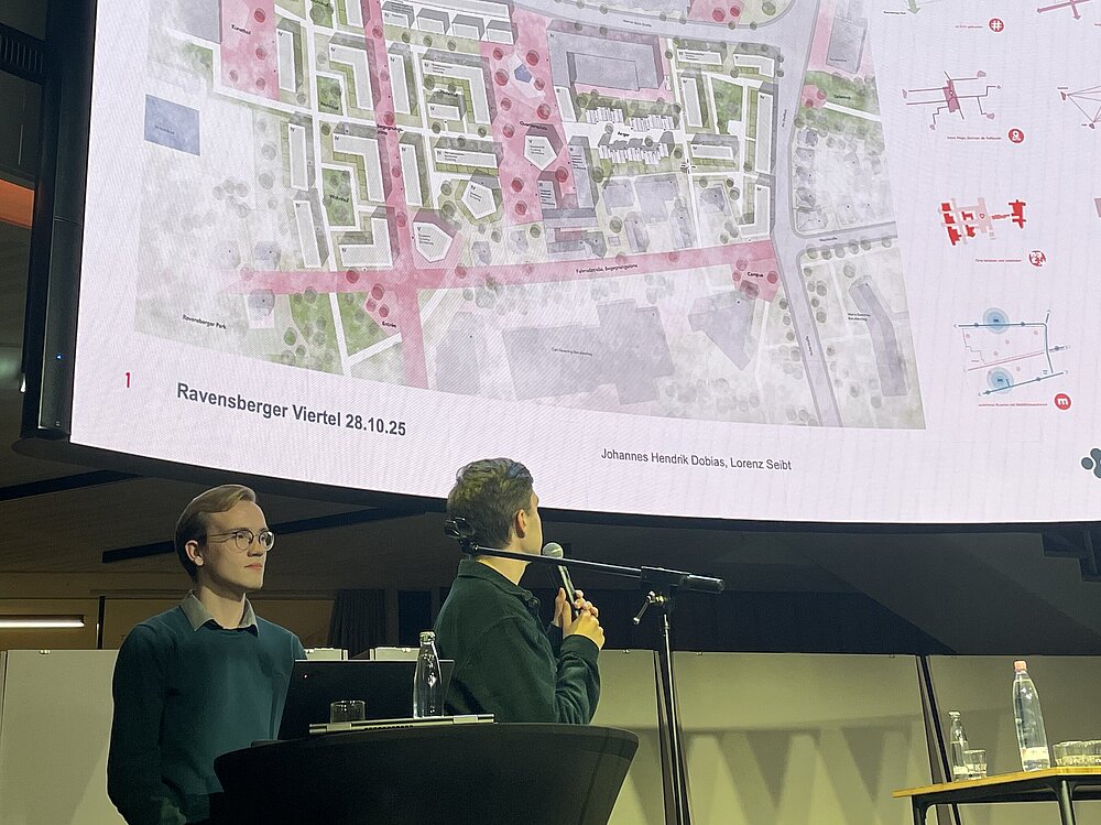 Vor zahlreichen Gästen stellten die Studierenden ihre Konzepte vor, die von visionären architektonischen Ideen bis hin zu durchdachten städtebaulichen Strategien reichten. Diese wurden von Prof. Jasper Jochimsen, Lehrgebiet Entwerfen, und Prof. Oliver Hall, Lehrgebiet Stadtplanung und städtebauliches Entwerfen, betreut. Die Bandbreite der Entwürfe beeindruckte die Fachjury durch die gestalterischen und konzeptionellen Tiefen, mit welchen sich die Nachwuchsplaner:innen dem Thema genähert hatten.