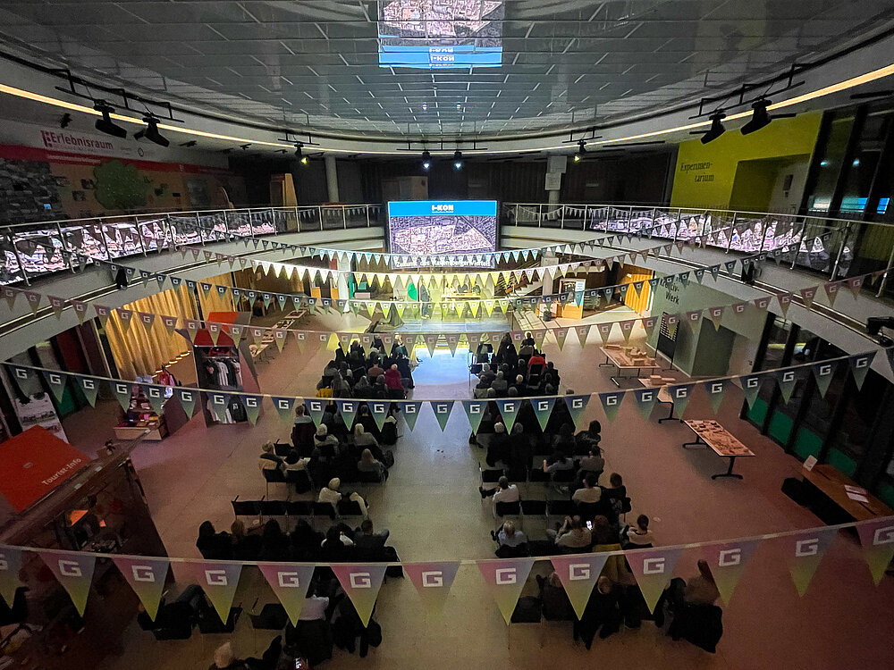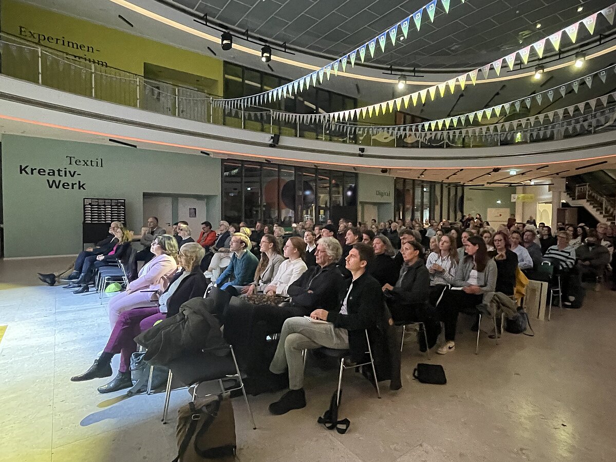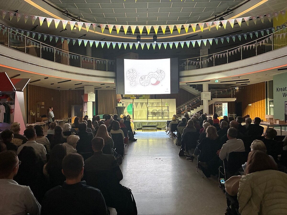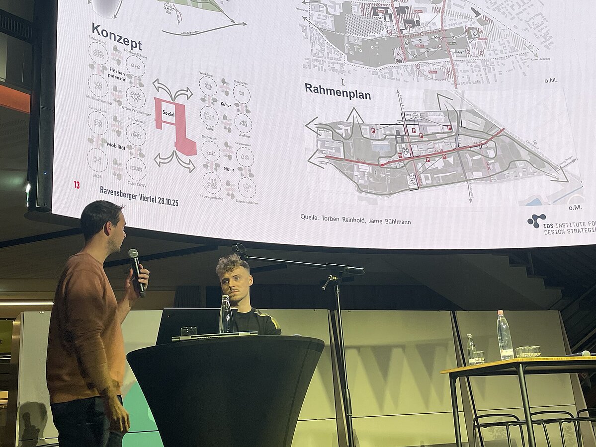 Neben der Präsentation der Entwürfe bot das Programm auch inhaltliche Impulse zur aktuellen Stadtentwicklung. Peter Köddermann von Baukultur NRW eröffnete den Abend mit einem Vortrag über die Bedeutung qualitätsvoller Baukultur im urbanen Wandel, gefolgt von einem Gespräch mit Claudia Koch, Dezernentin für Wirtschaft und Stadtentwicklung der Stadt Bielefeld, die die Bedeutung solcher studentischer Projekte für die städtische Planung betonte.