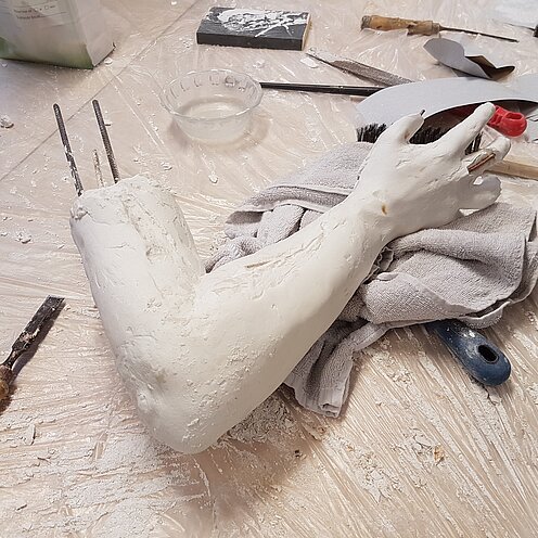 Neben Wahrnehmungsübungen und intensivem klassischen Modellieren und Zeichnen führen wir analoge Körperabformungen, etwa. mit Gips und Alginat durch, sowie digitale Scans. Darüber hinaus nehmen wir exemplarisch kunsthistorische, dreidimensionale Körperdarstellungen in den Blick. Auch Fragen zur aktuellen gesellschaftlich-kulturellen Wahrnehmung des Körpers können Teil des Diskurses sein.