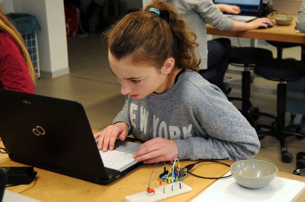 Am Campus Lemgo programmierten die Schülerinnen im Tech-Lipp mithilfe eines Ardino Controllers eine kleine Ampel und beschäftigten sich mit einer Maschine, die nach einer programmierten Ziehzeit automatisch den Teebeutel aus der Tasse zieht. Außerdem hörten die Schülerinnen einen Vortrag über die Geschichte von Frauen in der Technik. „Ich finde es toll, dass ich selbständig arbeiten konnte und gleich gesehen hab, was mein eingegebener Code an der Ampel bewirkt“, sagte Sina Pöpsel vom Marianne-Weber-Gymnasium in Lemgo.
