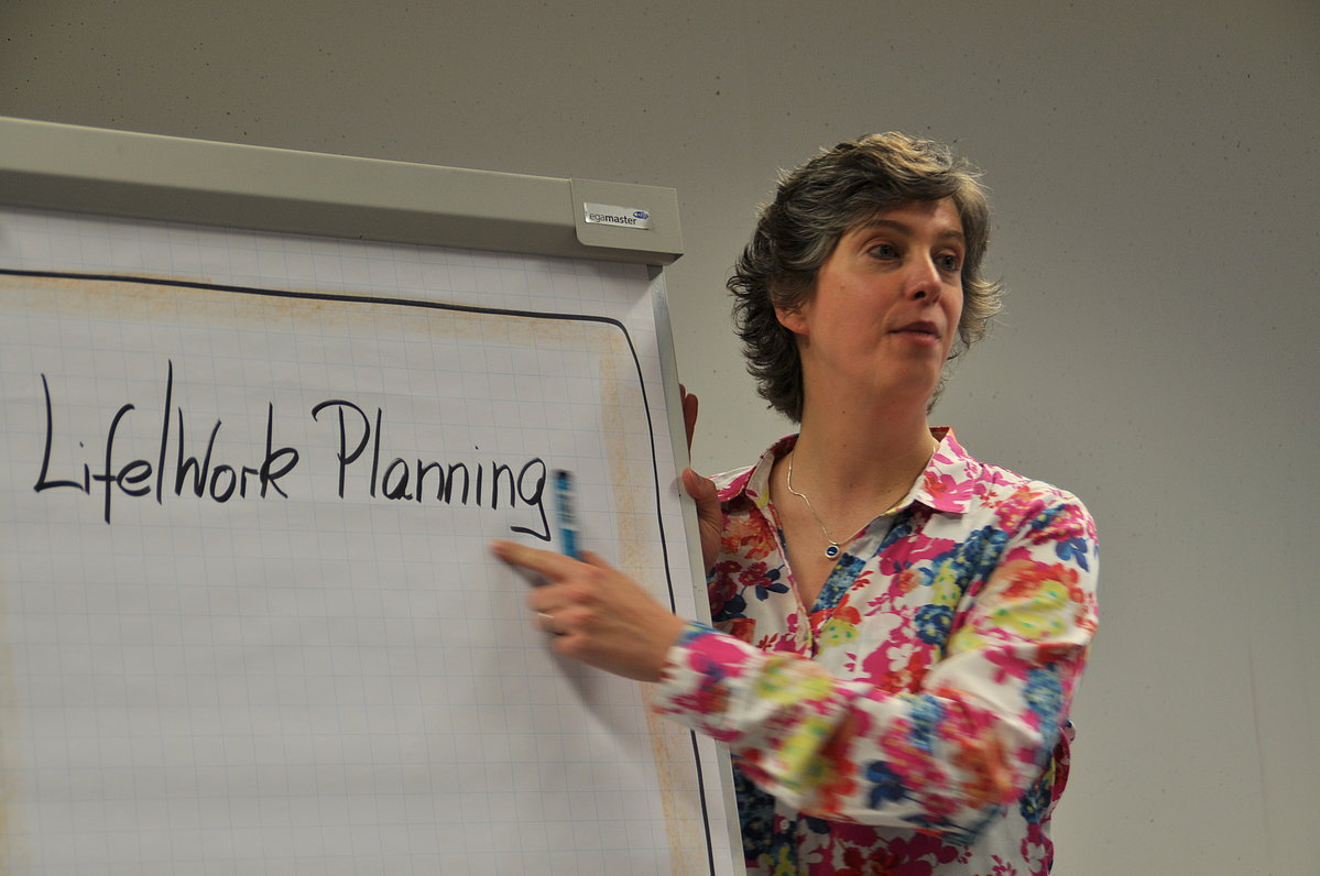 Diplomsoziologin Christiane Maschetzke erarbeitete in ihrem Fachvortrag „Life – Work – Planning – Mit System Karriere und Leben selbst gestalten!“ gemeinsam mit dem Publikum, wie eine Passung von Beruf und Privatleben erfolgreich gelingen kann. Sie betonte auch, wie wichtig es sei, sich für die Bestimmung des eigenen Berufsbildes systematisch Fragen auch zu beruflichen Rahmenbedingungen zu stellen. Dieser Prozess, so machte Maschetzke klar, brauche aber auch Reflexion, Zeit, Entwicklung und auch Reifung durch Fremdeinschätzungen.