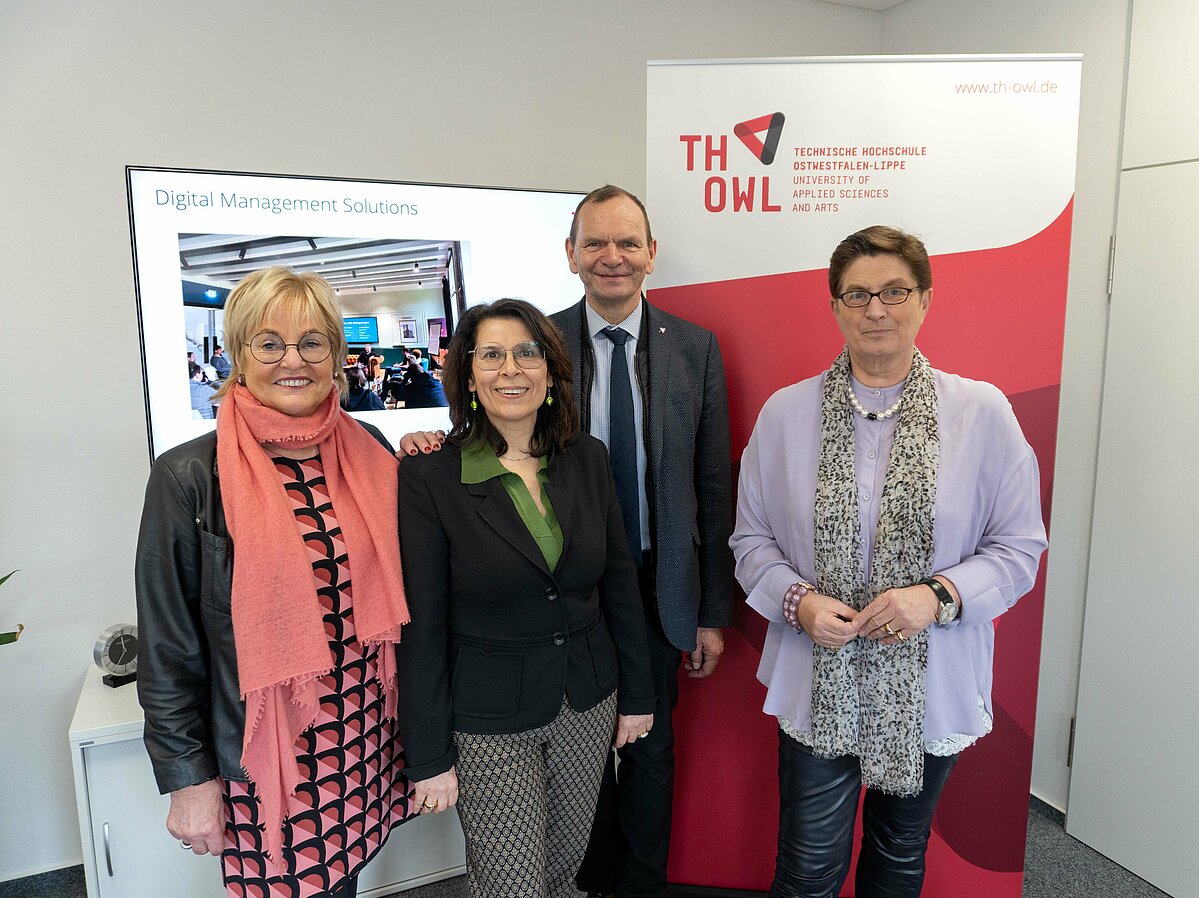 Um die Möglichkeiten zur Zusammenarbeit auszuloten, aber auch um den Innovation Campus kennenzulernen, trafen am Montag, 18. März, Dr. Marie-Theres Thiell, Co-Vorsitzende des VdU-Landesverbands Westfalen, Gerlind Rehkopf, stellvertretende Vorsitzende, und Heike Hettwer, Leiterin der Region Bielefeld des VdU-Landesverbands den Präsidenten der Hochschule, Professor Dr. Jürgen Krahl, in Lemgo.