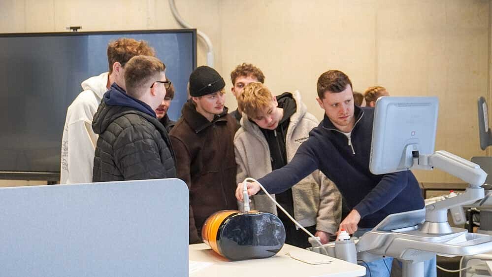 Besonders gut kam bei den Besucherinnen und Besuchern aus den Berufskollegs an, dass sie selbst in Aktion treten durften. Nach den Vorträgen konnten die Schülerinnen und Schüler verschiedene Medizintechnologien wie etwa ein Ultraschallgerät oder ein EEG-Messsystem im InnovationSPIN direkt ausprobieren. Tatjana Brasu informierte die Interessierten über die Möglichkeiten des 3D-Bioplotters für die individuelle Medikation.