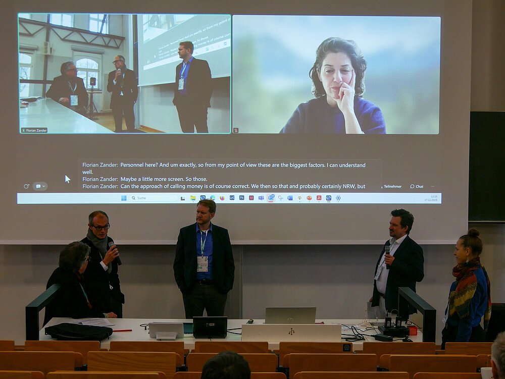 In den vier Panels wurden unterschiedliche Aspekte kommunaler Klimaanpassung diskutiert: Beim Klimafolgenmonitoring zeigte sich, dass klare Zuständigkeiten in der Verwaltung entscheidend sind, um Daten in wirksame Maßnahmen zu übersetzen. Das Panel zu Wasser, Retention und Schwammstadt befasste sich mit der Planung multifunktionaler Freiräume, die Regenrückhalt und Aufenthaltsqualität verbinden. In der Diskussion zur Mobilitätswende wurde betont, wie Straßenräume klimaresilient und zugleich mobilitätsfreundlich gestaltet werden können. Das Panel zu Hochschullehre und Partizipation hob schließlich die Hochschule als wichtigen Multiplikator hervor, deren interdisziplinäre Lehre aktiv Transformationsprozesse fördert.