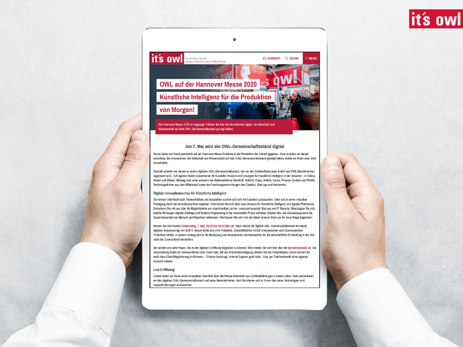Die digitale Innovationsschau ist jetzt online unter www.its-owl.de/hannovermesse.