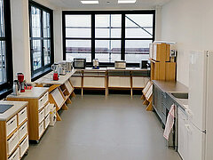 - FoodLab (Raum 1.712): perfekt ausgestattet für Produktentwicklung und –evaluation (z. B. Speiseeismaschine, Dörrautomat, Friteuse, Pflanzenmilchbereiter, Pasta-Maker, Waffelcup-Maker u.v.m.)
