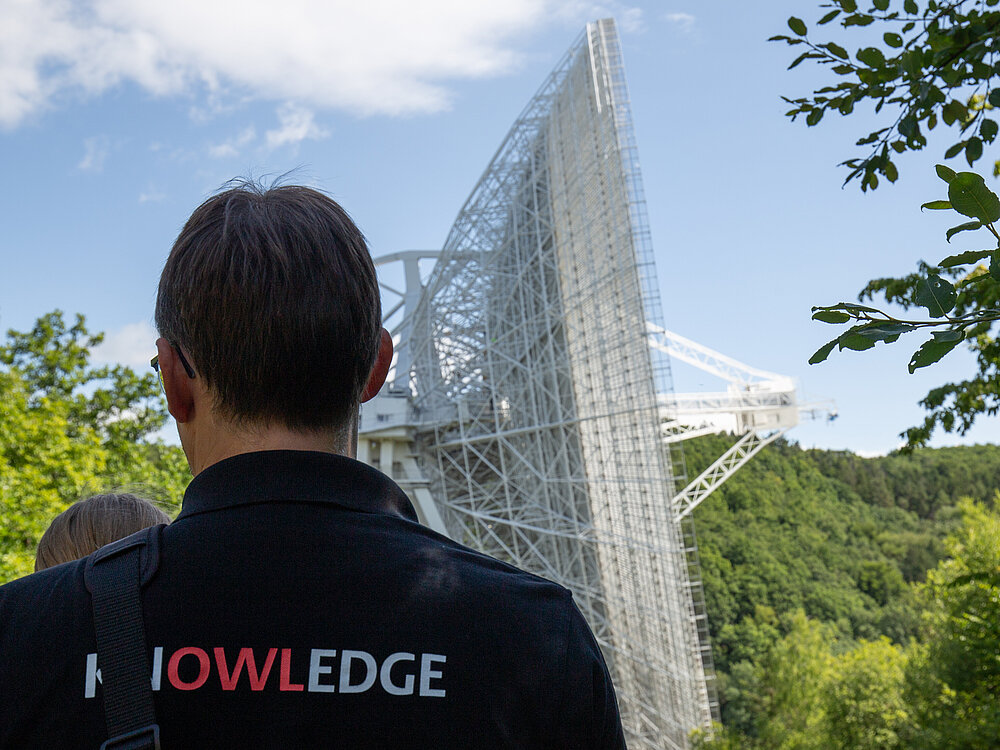 „Schon auf dem Fußweg zum Ziel kündigte sich das gewaltige Teleskop langsam an. Mit jeder Kurve, die man sich dem Tal näherte, wuchs die Dimension des Instruments scheinbar ins Unermessliche – bis man schließlich direkt davorstand und von der gigantischen Schüssel mit einem Durchmesser von 100 Metern förmlich erschlagen wurde“, schildert der Fachmann seine Eindrücke.