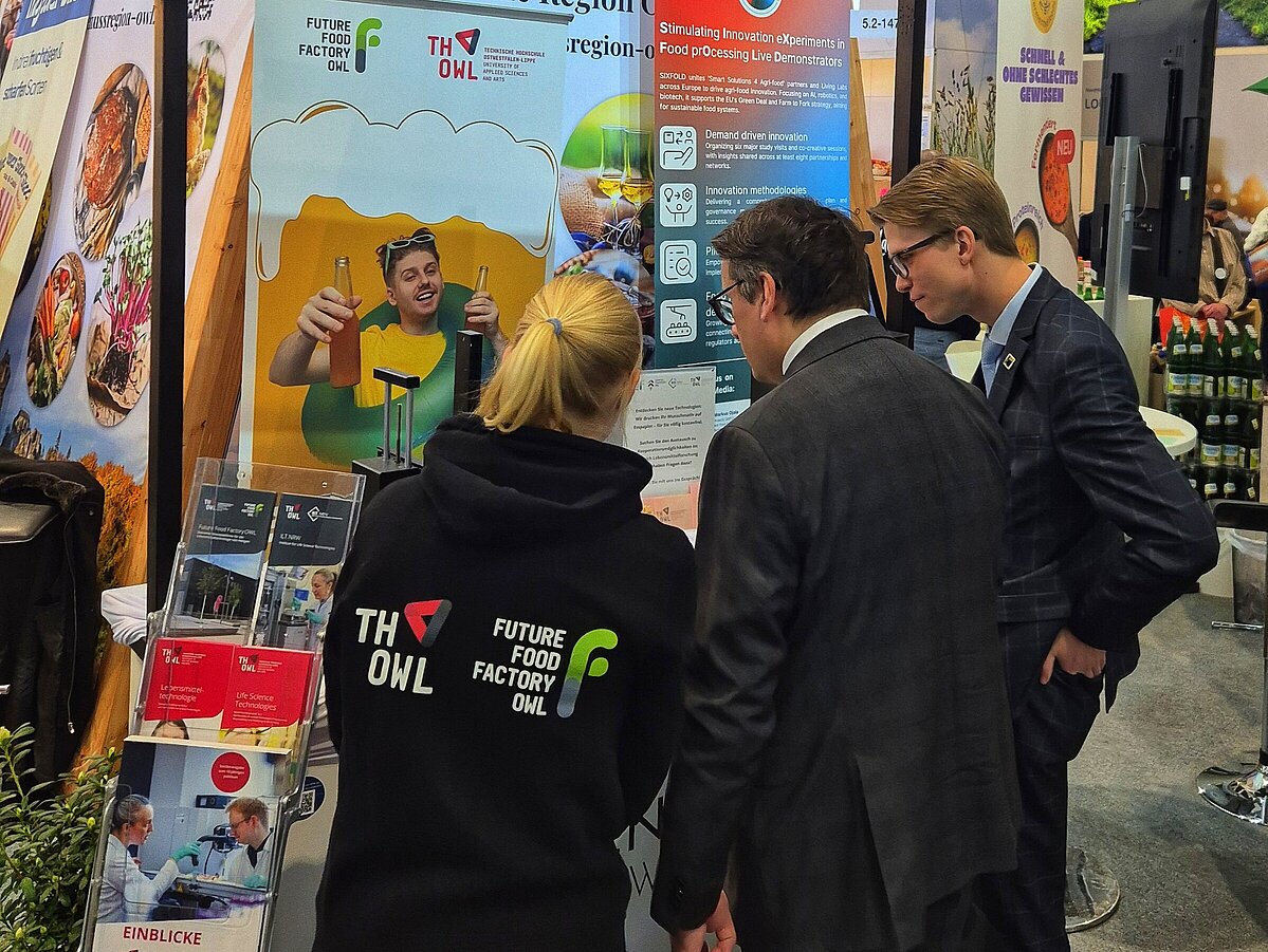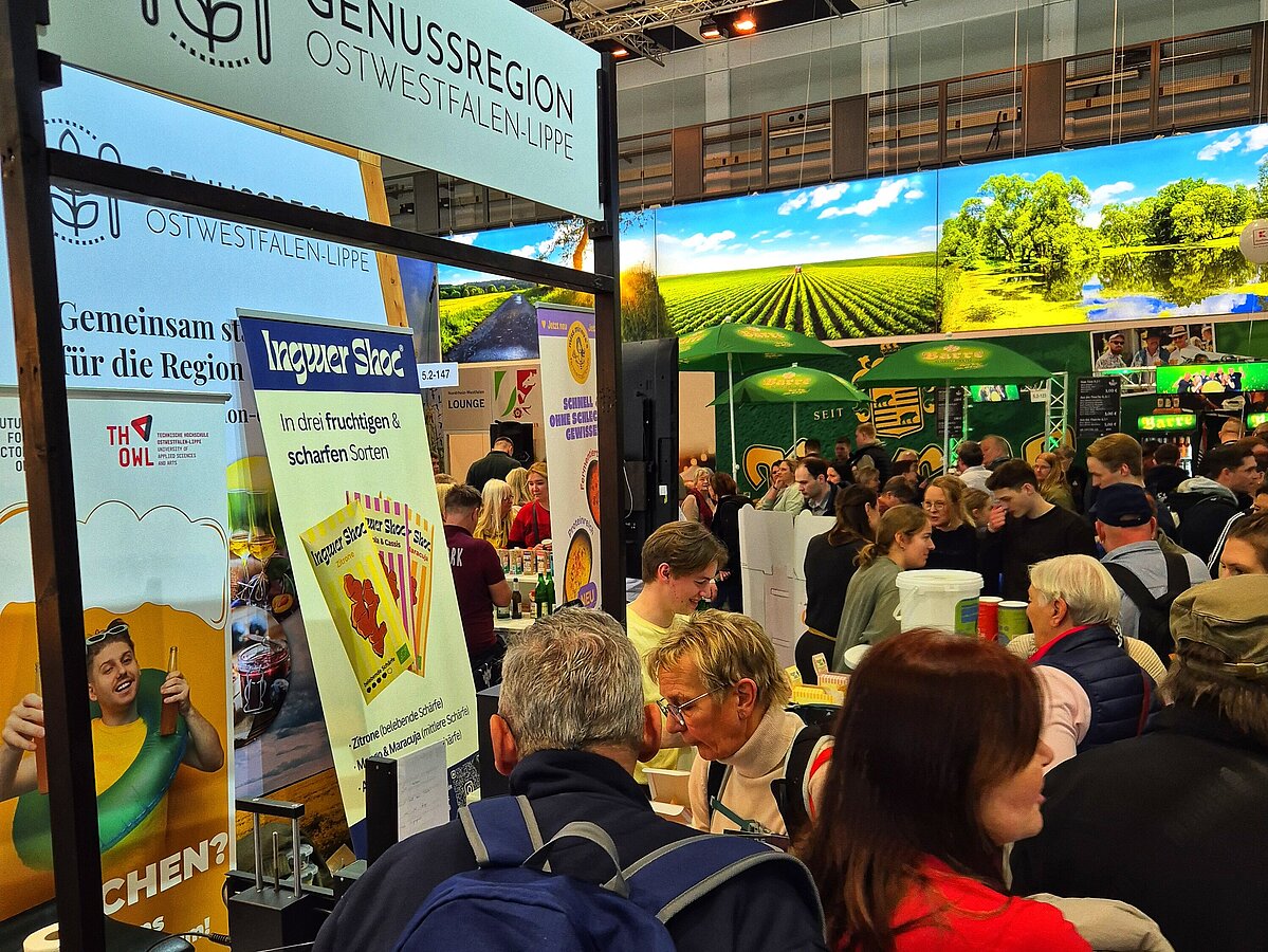 Die Grüne Woche feierte in diesem Jahr ihren 100. Geburtstag. Ein Jahrhundert, das verdeutlicht, wie individuell sich Ernährung verändert und an aktuelle Bedürfnisse angepasst hat: Stand vor 100 Jahren noch die reine Versorgung im Vordergrund, prägen heute der Wunsch nach Individualität sowie eine nachhaltige, effiziente und kostengünstige Lebensmittelproduktion die Agenda. Die TH OWL zeigte vom 16. bis 23. Januar in der NRW-Halle am Stand der Genussregion OWL, wie moderne Forschung diese Anforderungen in neue Technologien übersetzt.