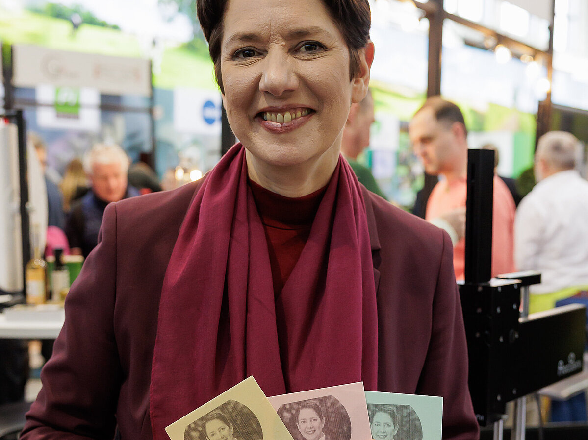 Auch die Politik zeigte sich von den Möglichkeiten beeindruckt: Silke Gorißen, Ministerin für Landwirtschaft und Verbraucherschutz des Landes Nordrhein-Westfalen, ließ sich vor Ort ein personalisiertes Porträt auf Esspapier erstellen und tauschte sich mit dem Team über moderne Verbrauchertrends aus. Auch Dr. Oliver Vogt, Bundestagsabgeordneter für den Kreis Minden-Lübbecke, zeigte sich begeistert von den Möglichkeiten des 3D-Lebensmitteldrucks für die Region und die Branche.