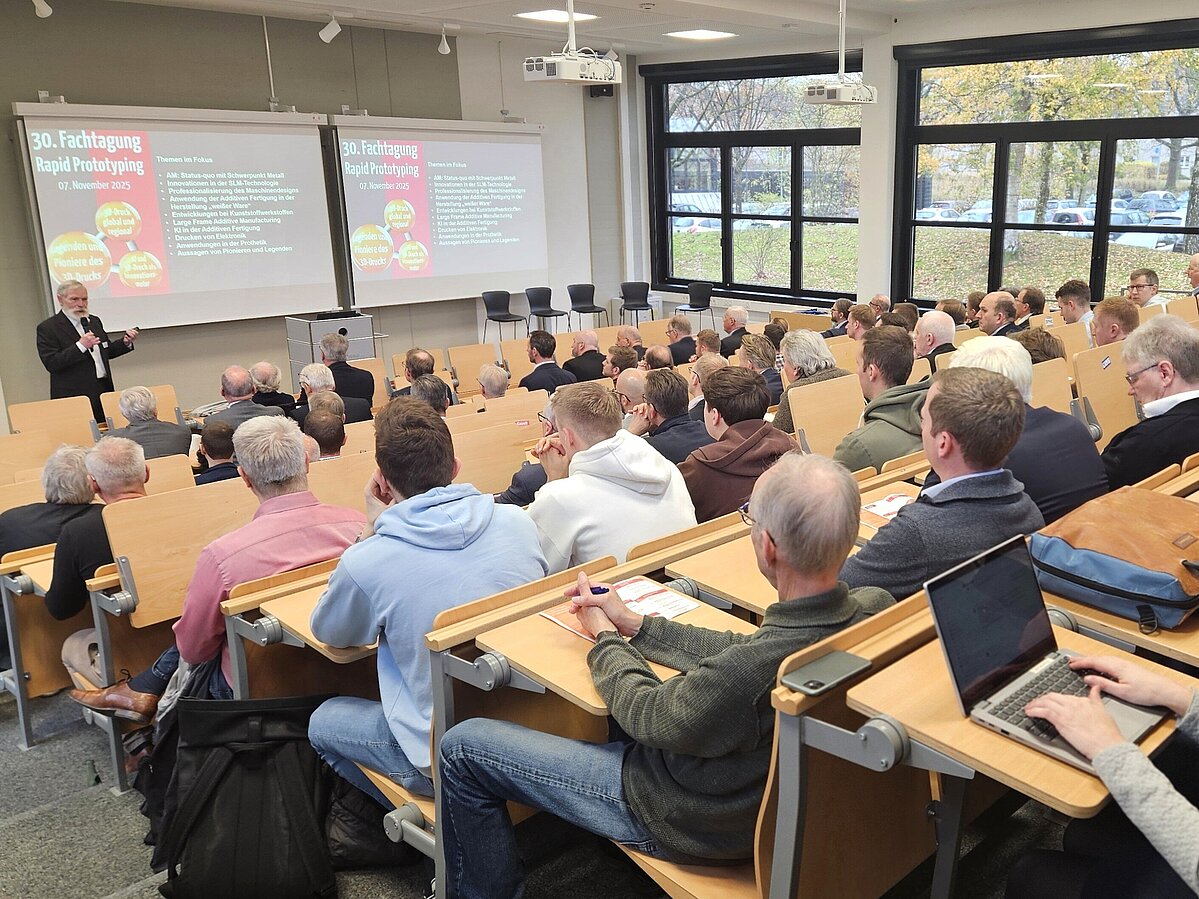 Elf hochkarätige Fachvorträge gaben einen Einblick in die aktuellen Entwicklungen der additiven Fertigung. Neben Themen wie dem Weg zur digitalen Fertigung und dem Einsatz von künstlicher Intelligenz standen in diesem Jahr Entwicklungen im Bereich der Kunststoff- sowie Metallverfahren im Mittelpunkt.