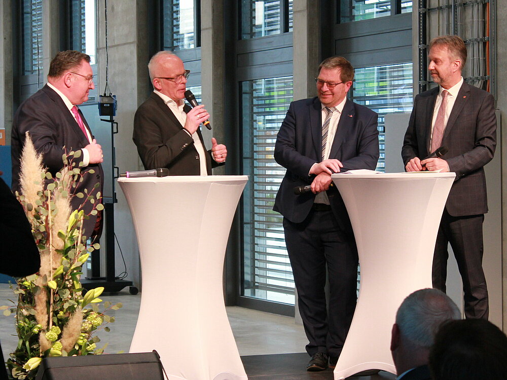 Die besten Lösungen für die Herausforderungen dieser Zeit entstehen gemeinsam: wenn Bildung, Wissenschaft und Wirtschaft zusammen an nachhaltigen Innovationen arbeiten. Der nun im Beisein von Wirtschafts- und Klimaschutzministerin Ministerin Mona Neubaur offiziell eröffnete InnovationSPIN in Lemgo ist ein solcher Think Tank für Forschung, berufliche Bildung und akademische Lehre: Mit der Unterstützung von Land, Bund und EU, die das Projekt mit insgesamt 27 Millionen Euro fördern, arbeiten die Technische Hochschule OWL, die Kreishandwerkerschaft Paderborn-Lippe und der Kreis Lippe hier gemeinsam an Ideen und Innovationsprojekten für eine bessere Zukunft.