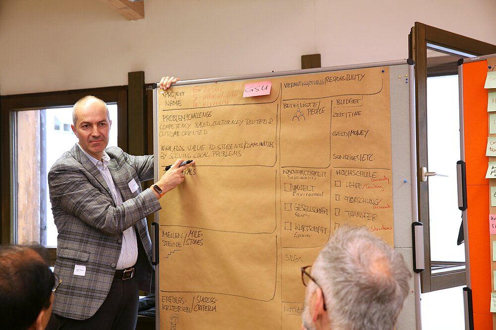 Drei Gruppen widmeten sich diesen Fragen mithilfe der Innovationsmethode „Design Thinking“. Zusätzlich gab es ein weiteres interaktives Workshop-Angebot zur „Spiral-curricularen Verankerung“ von Nachhaltigkeitsbildung durch Dr. Martin Gerner von der Technischen Universität Dresden sowie reichlich Gelegenheit zum Netzwerken.