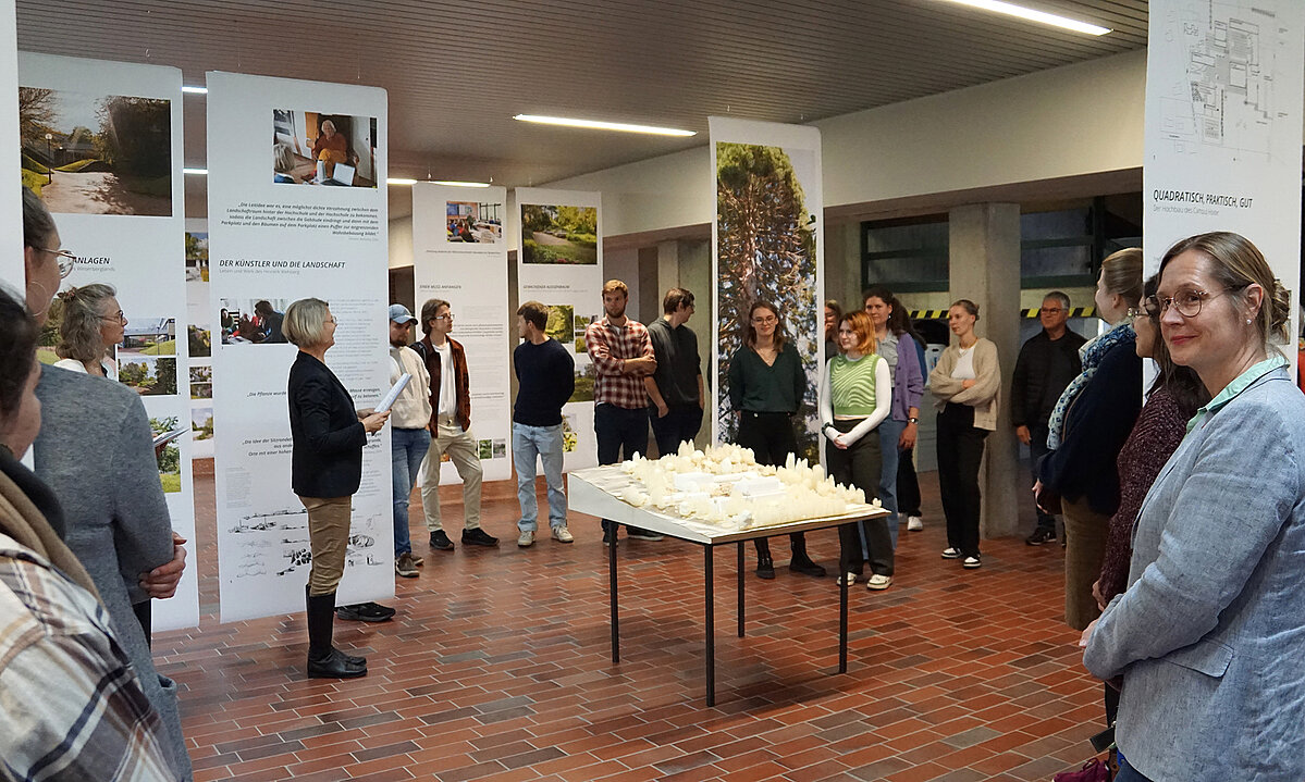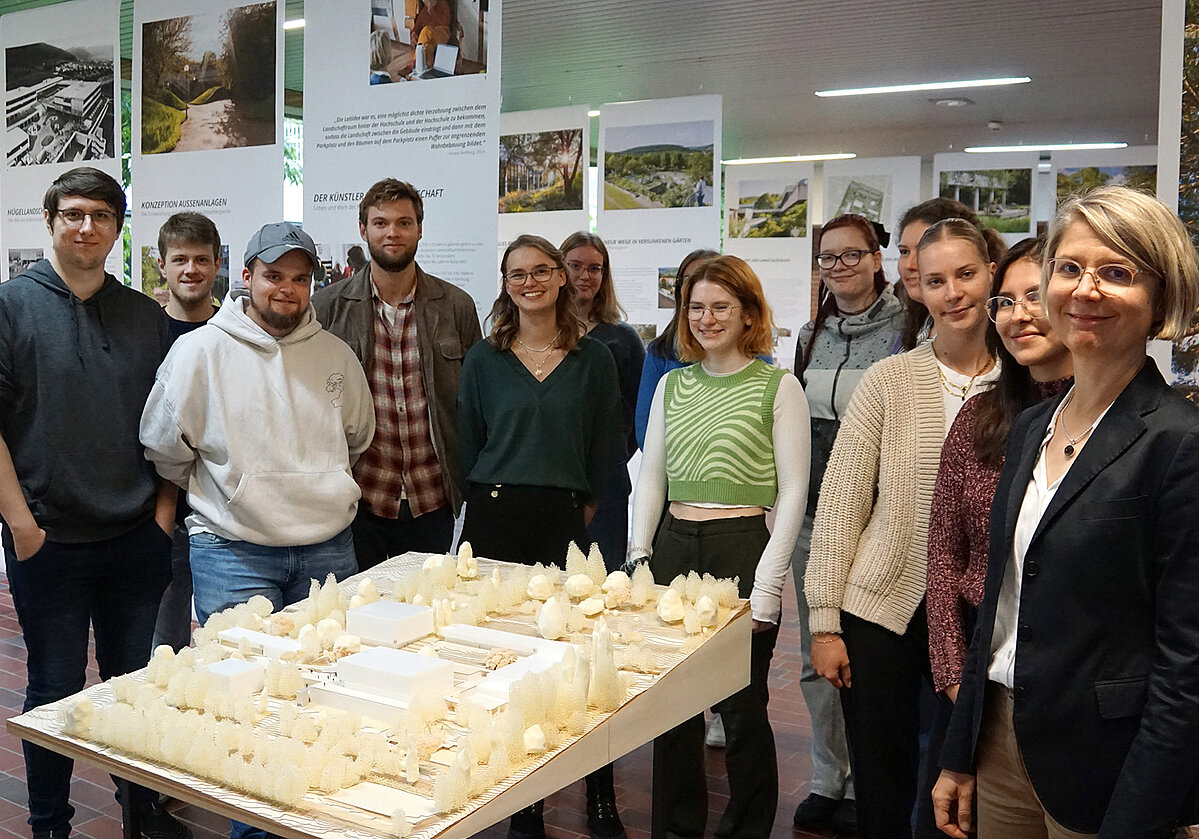 In ihrer Eröffnungsrede bezog Professorin Aufmkolk die Studierenden mit ein und stellte ihnen individuelle Fragen zu den Herausforderungen und Erfahrungen des Projekts. Dabei wurde deutlich, dass die intensive Auseinandersetzung mit dem Campus den Blick der Studierenden nachhaltig verändert hat. Ute Aufmkolk: „Wir haben uns sehr gefreut, dass die Studierenden die Herausforderung angenommen haben, den Ort, an dem sie sich täglich bewegen, so genau unter die Lupe zu nehmen. Herausgekommen ist eine gemeinschaftliche Liebeserklärung an den Campus Höxter!“