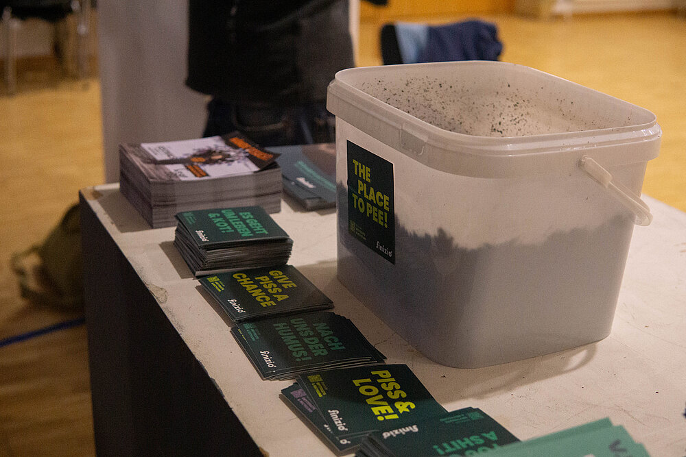 Begleitend zur Veranstaltung führte wasser^plus OWL außerdem eine groß angelegte Plakataktion an den Innentüren der Toilettenkabinen an den Standorten der TH OWL sowie bei zahlreichen Netzwerkpartner:innen durch. Die Plakate informierten über Fakten zu Trockentrenntoiletten, etwa dass bereits die Umstellung von einer Million Toiletten auf Trockentrenntechnologie jährlich über 10 Milliarden Liter Trinkwasser einsparen könnte, oder dass 50–80 % der Nährstoffe im Abwasser aus Urin stammen – obwohl Urin nur 1 % des Abwasservolumens ausmacht. In Schweden wird Urin als Dünger sogar „Guldet från kroppen“ – das Gold des Körpers – bezeichnet.