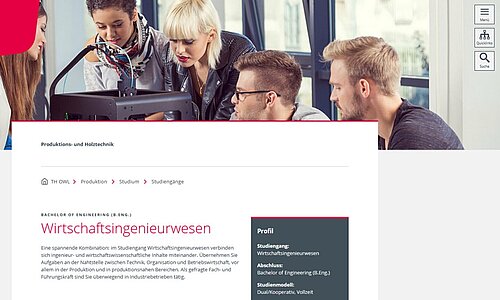 Den Studiengang Wirtschaftsingenieurwesen können Sie auch in großen Städten wie Berlin, Hamburg oder München studieren. Aber was zeichnet das Studium in Lemgo aus? Erstens eine gute Betreuung: Bei uns starten pro Jahr nicht 500, sondern etwa 50 Studierende. Dabei setzen wir auf kleine Übungs- und Praktikumsgruppen. Zweitens Praxisnähe: Alle Dozenten kommen aus der betrieblichen Praxis. Über Planspiele, Fallstudien oder Praktika möchten wir Sie auf Ihre berufliche Tätigkeit möglichst gut vorbereiten. Drittens ein einmaliges Profil: Wir bieten Ihnen drei Vertiefungsrichtungen an: Produktionsmanagement, Produktmanagement und Instandhaltungsmanagement.
