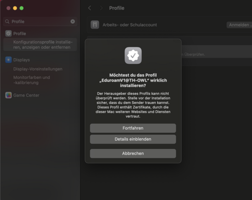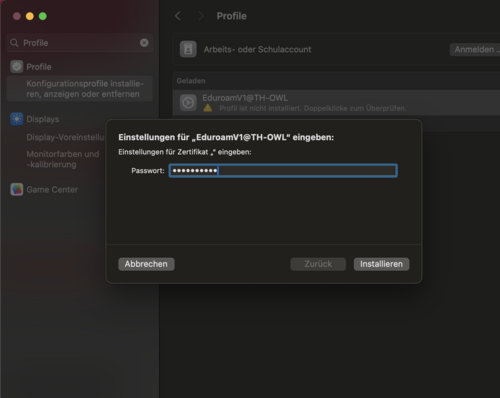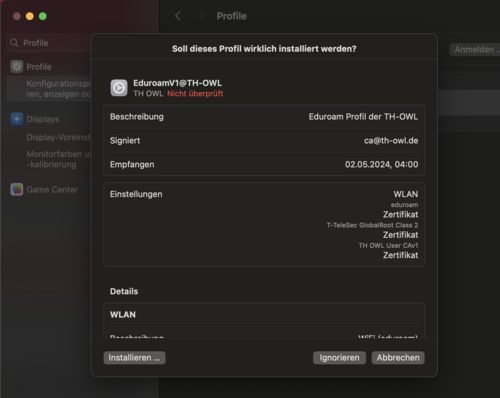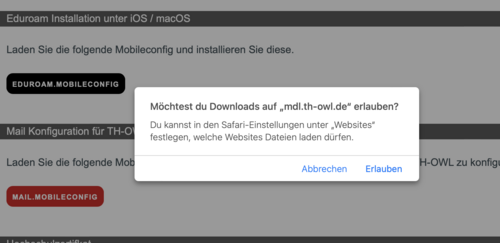 Für aktuelle Versionen von macOS können Sie die eduroam-Installation bequem über den Browser vornehmen: