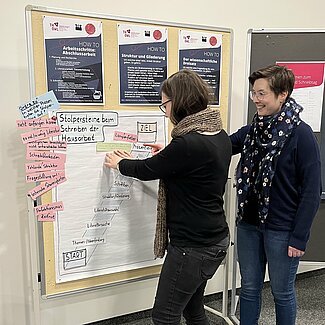 Neben Schreibimpulsen zum wissenschaftlichen Schreiben gibt es beim „Erstellen wissenschaftlicher Arbeiten“ die Möglichkeit in zwei kleinen Schreibwerkstätten am eigenen Schreibprojekt zu arbeiten. Außerdem erhalten Studierende in Workshops Infos zur wissenschaftlichen Formatierung in MS Word, zur richtigen Literaturrecherche sowie zur Literaturverwaltungssoftware Citavi.