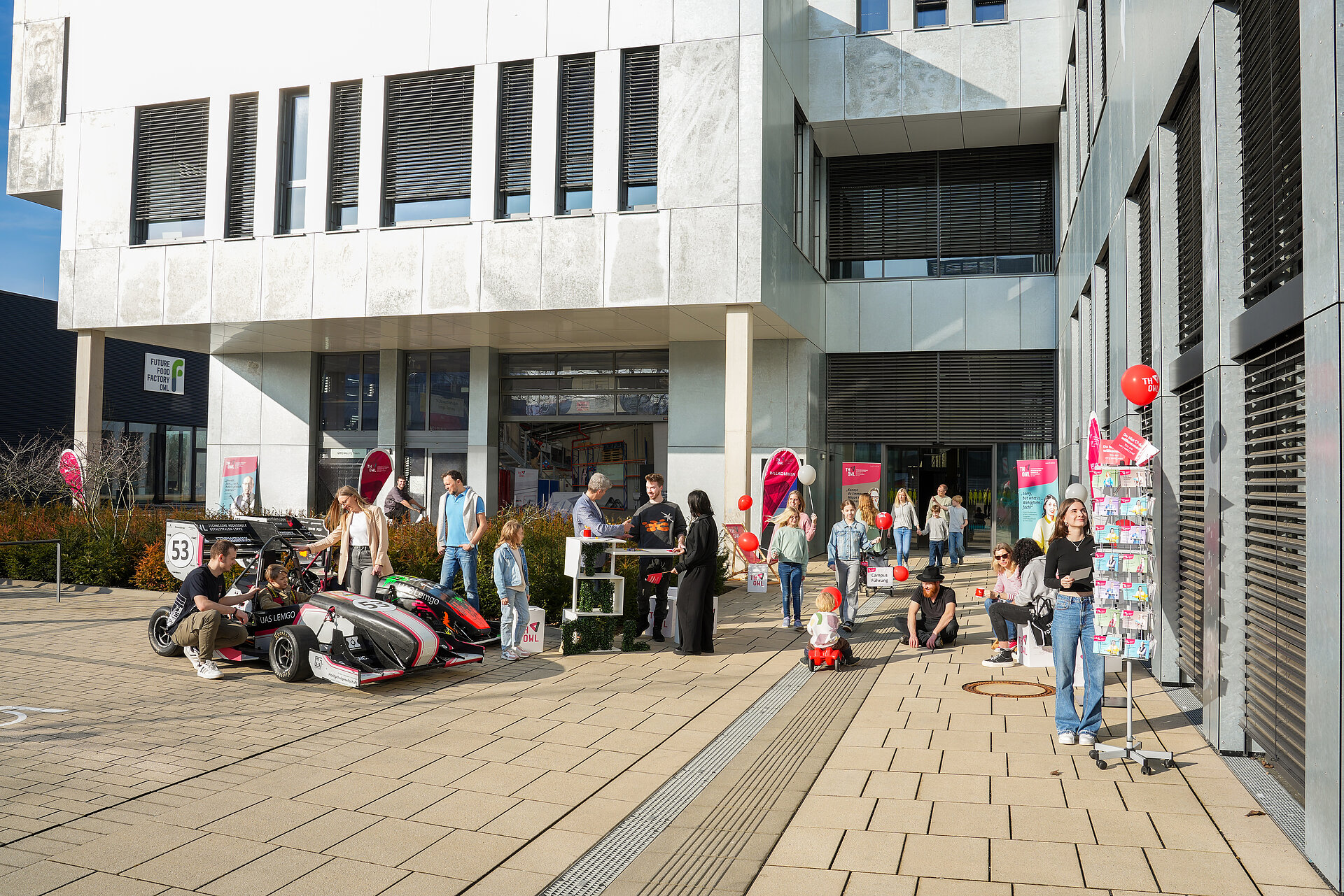 Bei den „Hop-On/Hop-Off-Campus-Führungen“, an die man sich einfach anschließen konnte, waren jeweils um 11 Uhr und um 13 Uhr rund 30 bis 40 Personen dabei. Schokolade aus dem 3D-Drucker, gefriergetrocknete Snacks und ein Riechparcours begeisterten nicht nur die jüngeren Gäste. Kinderschminken gab es natürlich ebenfalls.