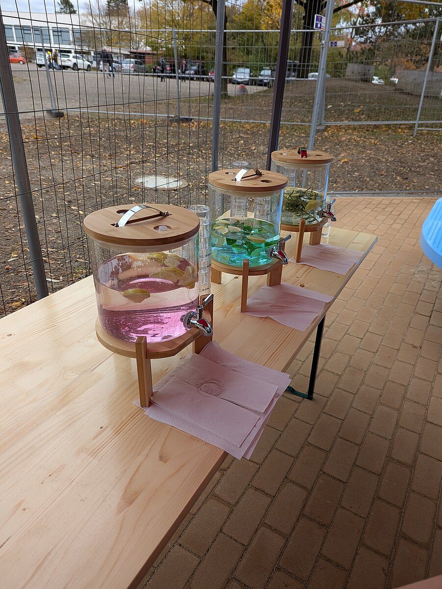 Auch das Projekt wasser^plus OWL war mit einem Aktionsstand vor Ort vertreten. Besucher:innen konnten verschiedene Kreationen aus Leitungswasser probieren, etwa gefärbtes Wasser mit Sirup oder erfrischende Varianten mit Zitrone, Minze oder Rosmarin. Der Stand war stark frequentiert, und die Schülerinnen und Schüler hatten viel Freude daran, die unterschiedlichen Geschmäcker zu entdecken. Dabei machte das Team von wasser^plus OWL auf die Vorteile von Leitungswasser aufmerksam: sauber, nachhaltig, kostengünstig und jederzeit verfügbar. Zusätzlich erhielten die Jugendlichen Einblicke in Berufsperspektiven in der Wasserwirtschaft. So wurde sowohl das Bewusstsein für die Vielfalt und Qualität von Leitungswasser gestärkt als auch das Interesse an möglichen beruflichen Chancen geweckt.
